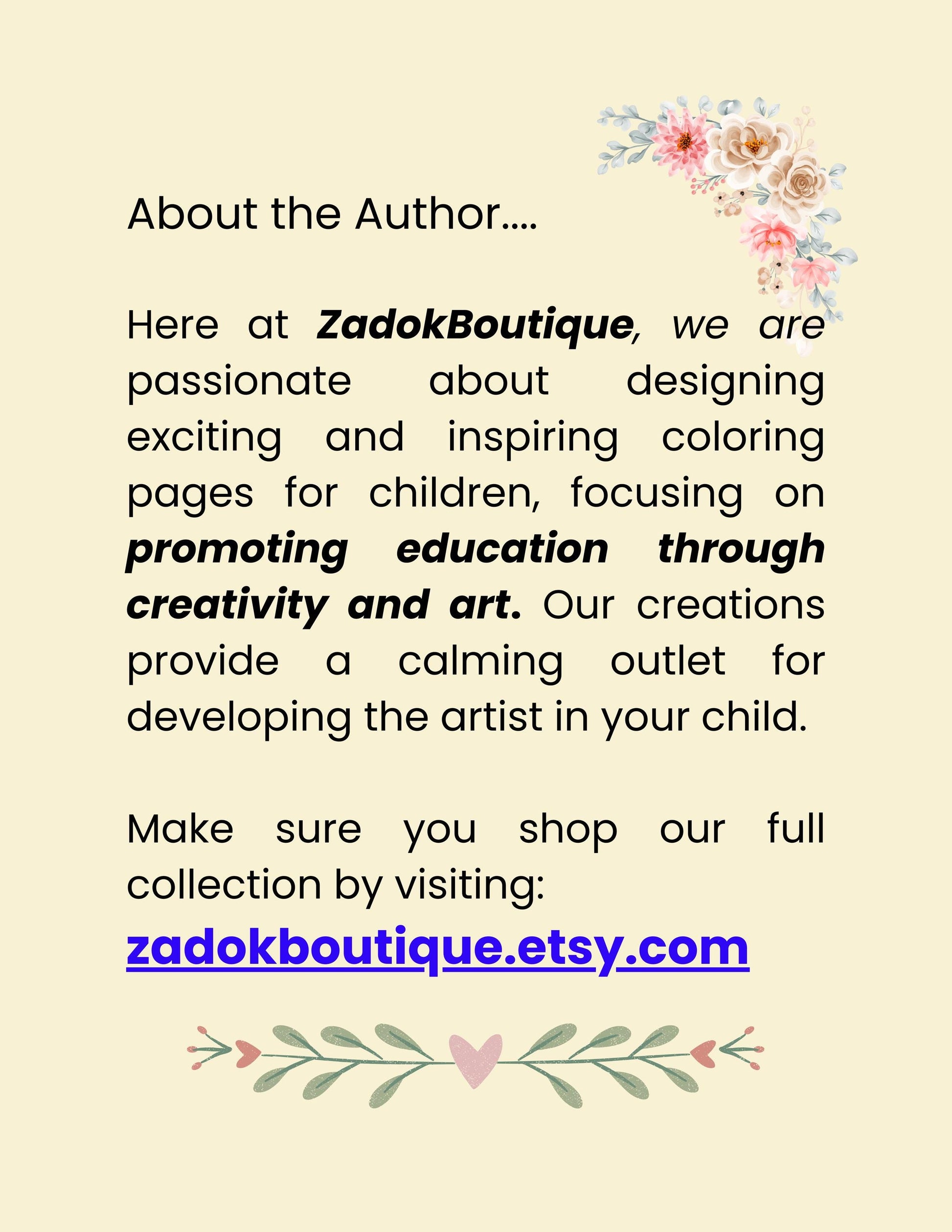 A-Z Alphabet coloring pages for Children - In this coloring book you get 26 coloring pages of FLOWERS for A-Z of the alphabet. Zadokboutique is passionate about designing exciting and inspiring coloring pages for children, focusing on promoting education through creativity and art, while providing therapy through art as well as helping to develop the artist in your child.